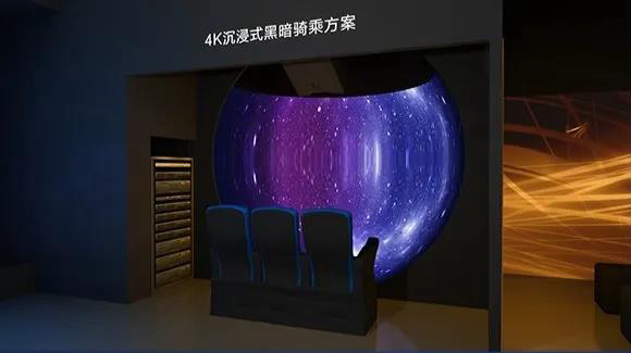 愛普生原生4K分辨率投影機(jī)CB-L12000Q配合Navitar魚眼鏡頭HS68打造4K沉浸式黑暗騎乘方案。全動感座椅提供多維度沉浸式體驗,讓用戶在互動中,感受更加真實的虛擬世界,沉浸于光影構(gòu)建出的絢爛世界中。該方案通過定制化球幕片源,結(jié)合AV Stumpfl PIXERA Two服務(wù)器實現(xiàn)畫面無損流暢播放。MX4D®動感技術(shù)支持3自由度運動,及十多種特效呈現(xiàn),讓觀眾如臨其境暢享“飛行”。