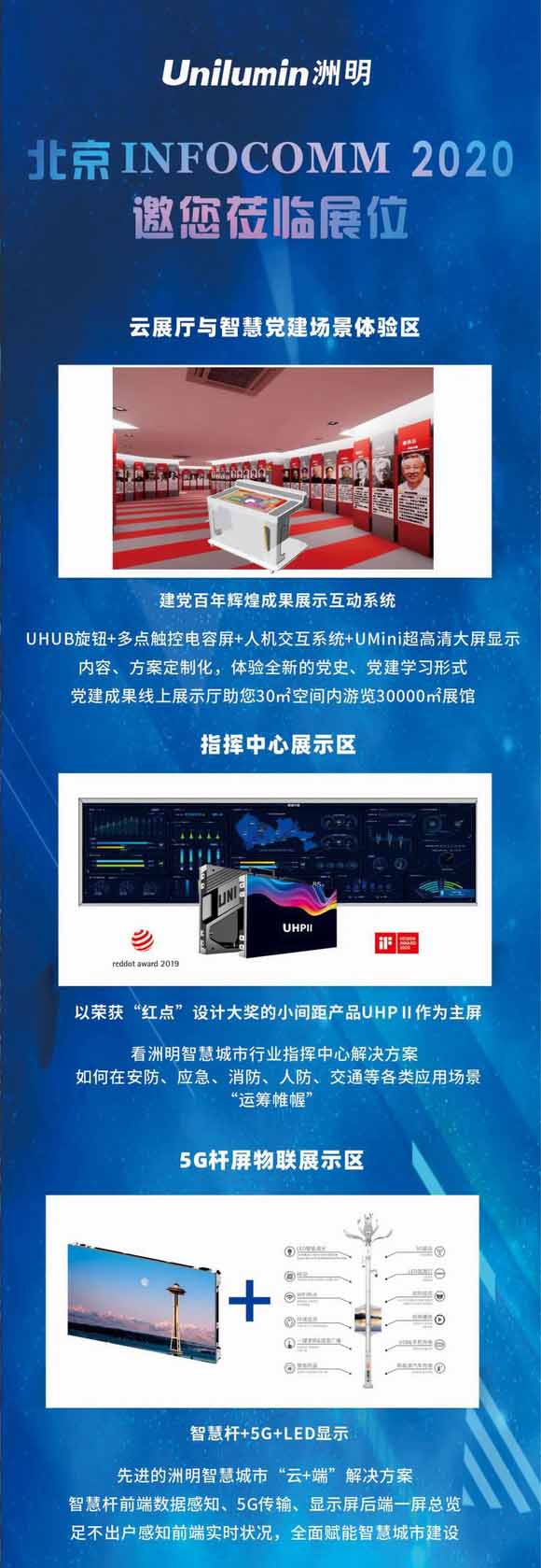 2020年9月28日-30日,享譽(yù)亞太地區(qū)的北京國際視聽集成設(shè)備與技術(shù)展(北京InfoComm China 2020)將在北京國家會(huì)議中心盛大舉行。洲明將以“桿屏物聯(lián),端云鏈接”為主題,攜新技術(shù)新產(chǎn)品重磅亮相EG2-01展位。