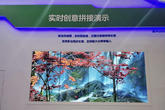 設(shè)備簡述:創(chuàng)意拼接處理器純硬件實現(xiàn)任意間距、任意顯示介質(zhì)、任意角度的創(chuàng)意拼接項目。設(shè)備支持配合機械臂,實時采集、處理圖像,無需內(nèi)容做特殊處理;支持超大分辨率信號輸入。