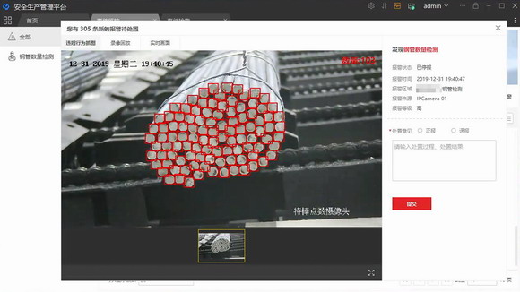 在某大型鋼鐵集團(tuán)的特棒分廠的特棒離線稱重系統(tǒng),使用海康威視視頻AI智能識(shí)別技術(shù),代替了原有人工鋼管數(shù)數(shù)來核驗(yàn)打標(biāo)簽的方式。
