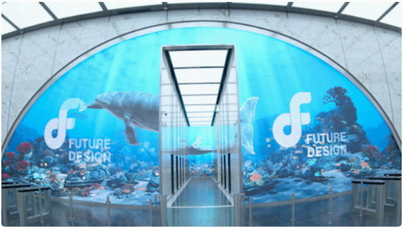 屏體的設(shè)計也非常符合大樓的現(xiàn)代化風格,整屏面積一百多平方米,占據(jù)了藝術(shù)大廳的“半壁江山”。半圓結(jié)構(gòu)異形LED顯示屏的設(shè)計貼合場景的藝術(shù)屬性,能夠助力大廳多維度價值強化。