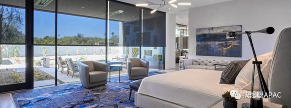現(xiàn)代風(fēng)格的建筑中,獨(dú)特的照明設(shè)備鑲嵌在高高的天花板上,窗簾升起,游泳池和室外庭院的美景一覽無(wú)遺。分布式音/視頻基于 Crestron DM NVX® AV-over-IP 技術(shù)部署,只需輕輕一碰就能在任何房間播放音樂(lè)。無(wú)論是身處臥室還是廚房,甚至在游泳池旁,新聞、體育、電影都可以隨心播放。