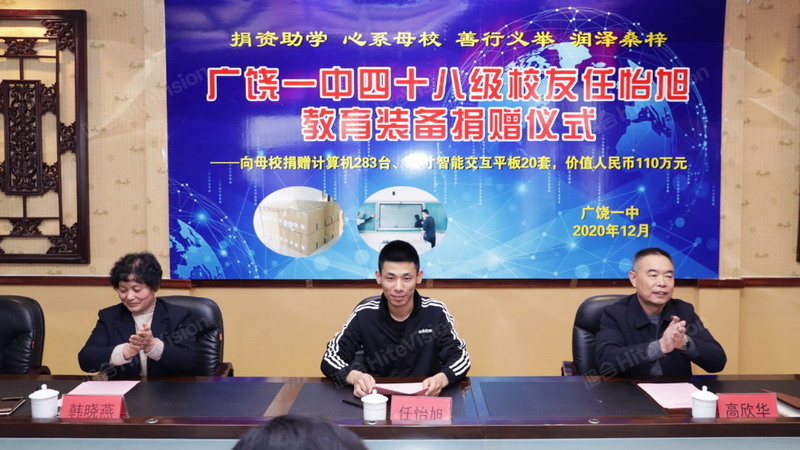 2020年12月29日上午,“廣饒一中四十八級校友任怡旭教育設(shè)備捐贈儀式”在廣饒一中三校區(qū)順利舉行。上海無鋒科技聯(lián)合創(chuàng)始人任怡旭(旭旭寶寶)向母校廣饒一中捐贈了20套鴻合智能交互平板和283臺計算機,價值110多萬元,進一步提升了廣饒一中信息化教學(xué)條件,為母校發(fā)展獻出了自己的一份力量。