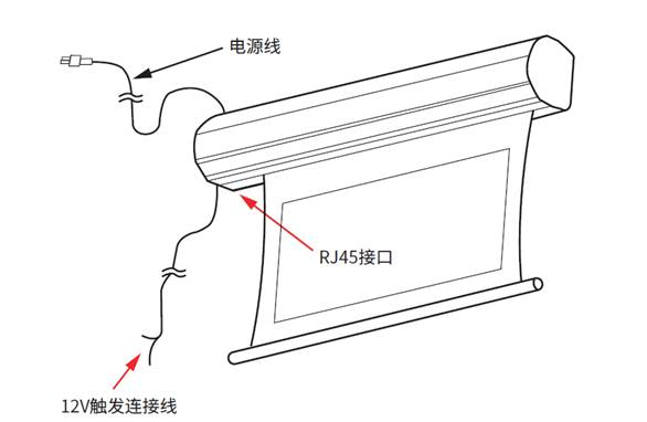首先要把帶有RJ45接頭的12V觸發(fā)連接線,插入到外殼上的RJ45接口,然后再將12V的電源連接到12V觸發(fā)連接線預(yù)留的兩根接線上面,紅色接電源的正極,綠色接電源的負極。連接好12V電源后,屏幕即可通過12V電源的接通與斷開來聯(lián)動運行。