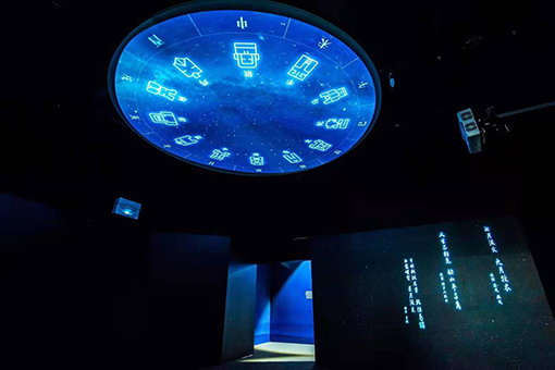 在“秘密”版塊,通過(guò)頂部沉浸式的星空投影劇場(chǎng),讓觀眾身臨其境感受華夏先民如何仰望星空,在天體的運(yùn)轉(zhuǎn)變化中捕捉時(shí)間印記,掌握季節(jié)和物候規(guī)律,指導(dǎo)農(nóng)耕文明下的生產(chǎn)生活。