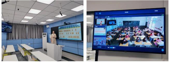 語文學(xué)科周老師通過語音、視頻在線提供異地課堂活動(dòng)工具,實(shí)現(xiàn)跨越兩地的真實(shí)互動(dòng),不同班級(jí)的實(shí)時(shí)競(jìng)爭(zhēng),輕松調(diào)動(dòng)兩個(gè)鄉(xiāng)鎮(zhèn)教室課堂的學(xué)習(xí)氣氛。中心校老師表示:“這種教學(xué)方式是學(xué)生們第一次接觸,剛開始有點(diǎn)不適應(yīng),但是學(xué)生們很感興趣,課堂上都積極舉手參與,很好地調(diào)動(dòng)了課堂氛圍!