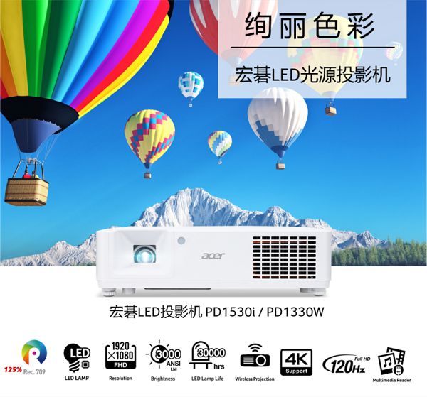 近日,宏碁發(fā)布兩款采用LED光源的新款家用辦公投影機(jī)——PD1530i和PD1330W,投影畫面色彩絢麗,3000流明高亮度,使用壽命長(zhǎng),功能豐富且人性化,適用于家用娛樂(lè)及商務(wù)辦公等多種場(chǎng)景。對(duì)于今年受新冠特殊情況影響,不得不長(zhǎng)期在家辦公的用戶和上網(wǎng)課的孩子們來(lái)說(shuō),LED光源的投影機(jī)是不錯(cuò)的選擇。