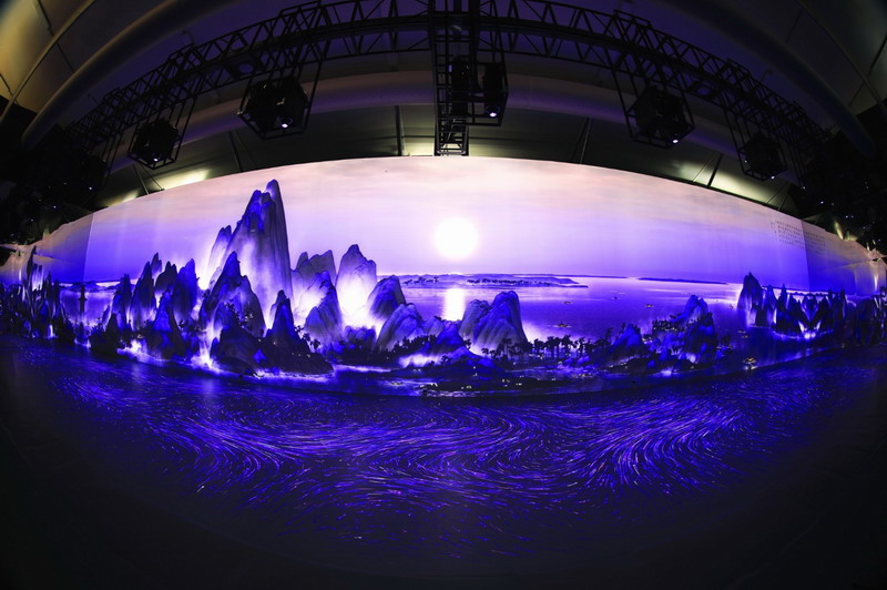 “丹青劇場”是展館內(nèi)最大的弧面環(huán)幕單元,機位和成像距離相比“盛世長卷”的場景更為復雜。對于同一型號的投影機而言,環(huán)幕場景需要較高的適配性。