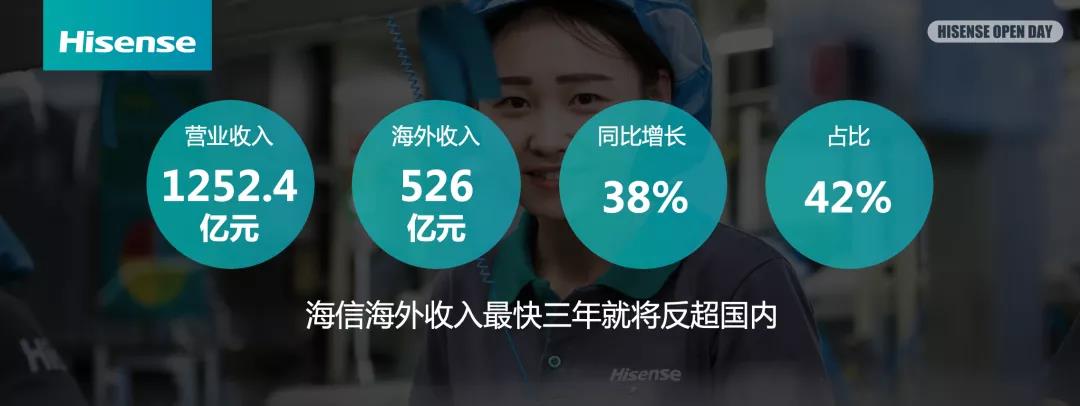 今年前三季度,海信集團(tuán)公司實(shí)現(xiàn)營業(yè)收入1252.4億元,這個數(shù)據(jù)已經(jīng)接近2019年的全年營收,前三季度海外收入達(dá)到526億元,同比增長38%,占比已達(dá)42%。海信海外收入最快3年就將反超國內(nèi)。