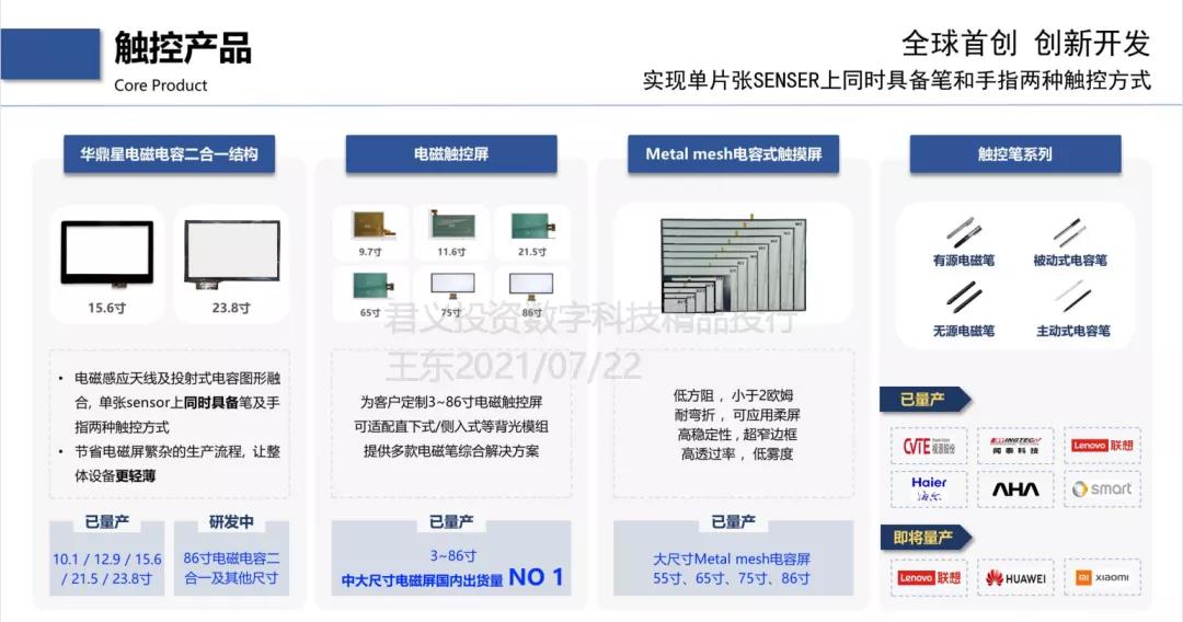 深圳市華鼎星科技有限公司成立于2012年,目前在東莞大嶺山、及江西萬安縣均設(shè)有生產(chǎn)基地,廠房總面積15000平,公司在國內(nèi)外獲得多項(xiàng)發(fā)明專利技術(shù),具備強(qiáng)大研發(fā)實(shí)力和市場前景,有著上下游整合開發(fā)能力,從自我研發(fā)晶片、電路開發(fā)、模組設(shè)計(jì)、制造加工、可靠性驗(yàn)證,發(fā)展以電磁式觸控屏/Metal mesh電容式觸摸屏/電磁電容二合一觸控屏及觸控筆產(chǎn)品為核心的新型高科技型企業(yè),可為客戶提供觸控產(chǎn)品全方位完整的解決方案。