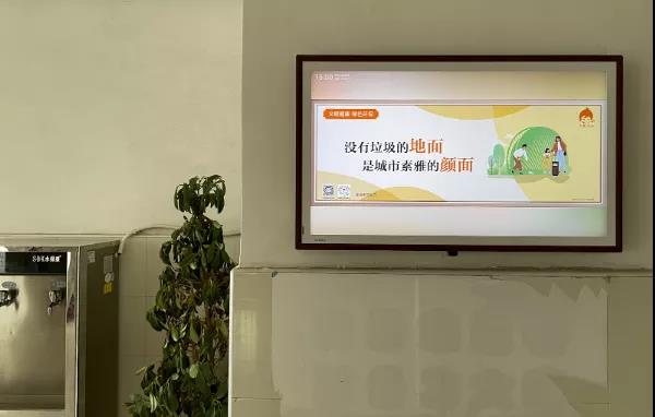 在該校人流量較為集中的食堂,希沃云屏則主要被用于展示綠色環(huán)保宣傳海報(bào),以及播放生活垃圾分類引導(dǎo)片,培養(yǎng)學(xué)生們的環(huán)保意識(shí)。