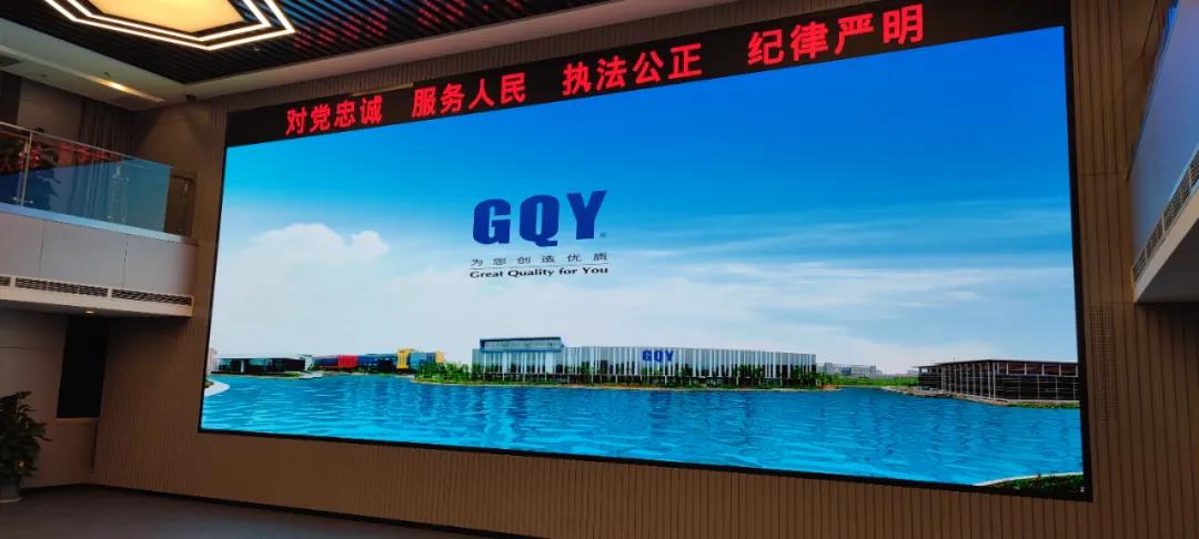 為了更好的用大數(shù)據(jù)服務邊防檢查安全工作,北京邊檢總站新建設的大數(shù)據(jù)研判中心于2021年11月正式投入使用。步入大數(shù)據(jù)研判中心,在嶄新明亮的大廳里,最引人矚目的便是正中央由GQY視訊為其打造的面積近45平米的超高清小間距LED顯示屏!皩h忠誠,服務人民,執(zhí)法公正,紀律嚴明”十六個字在大屏上赫然醒目。