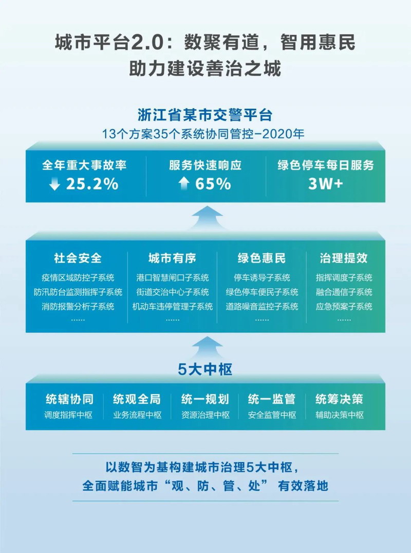 而構(gòu)建善治之城的關(guān)鍵,則是將數(shù)智化技術(shù)與創(chuàng)新與城市治理各業(yè)務流程充分適配,全域感知城市每一處脈絡,覆蓋城市全場景,通過全網(wǎng)計算架構(gòu)與體系深入挖掘多維數(shù)據(jù)價值,打造面向不同行業(yè)、部門的場景應用范式,并構(gòu)建出多部門協(xié)同機制,使能業(yè)務敏捷創(chuàng)新,最終實現(xiàn)城市治理的“統(tǒng)轄協(xié)同、統(tǒng)籌決策、統(tǒng)管全局、統(tǒng)一規(guī)劃、統(tǒng)一監(jiān)管”新面貌。
