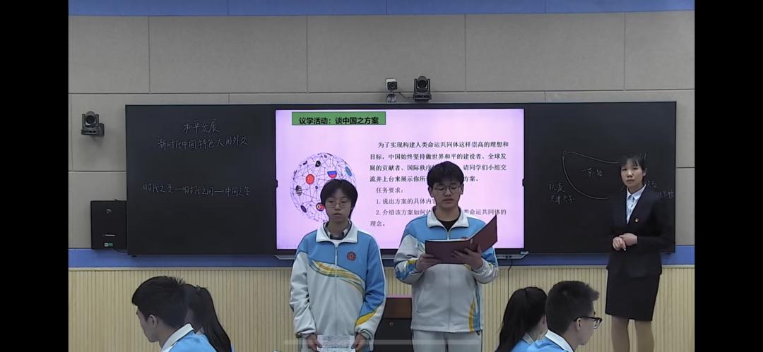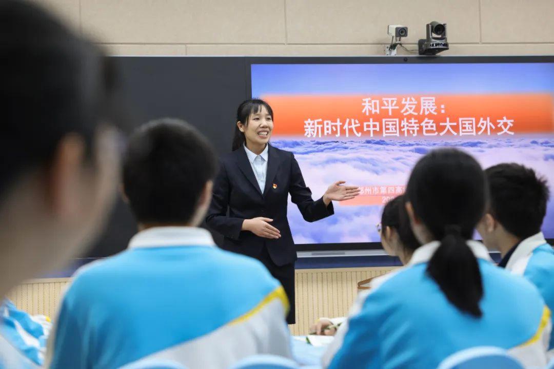 鄭州市第四中學(xué)作為本場教研活動思想政治學(xué)科的分會場,由白佩玉老師展示的《和平發(fā)展:新時代中國特色大國外交》一課,拉開了本場活動思政學(xué)科教研的帷幕。