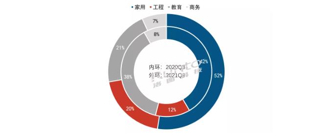 2021年第三季度中國(guó)大陸激光投影分場(chǎng)景出貨量結(jié)構(gòu)