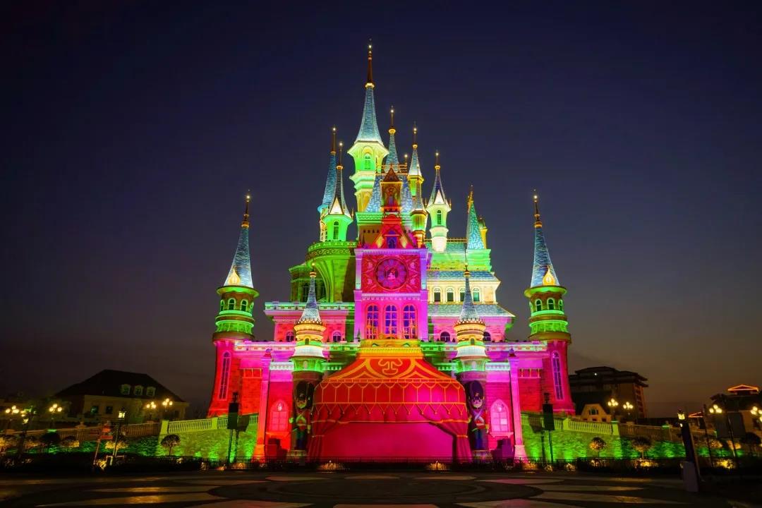 夜幕下的樂(lè)園,煥發(fā)出新的魅力。在25臺(tái)巴可UDX-W32投影機(jī)的映照下,《皇帝的新裝》、《丑小鴨》、《灰天鵝》、《賣火柴的小女孩》、《拇指姑娘》等16分鐘的經(jīng)典童話故事,“流淌”在夜幕下的城堡上。