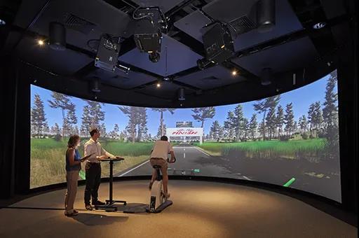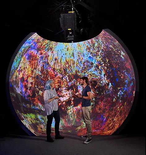 位于澳大利亞的科廷大學(xué)在計劃對其所屬的沉浸式可視化和研究中心(HIVE)進行升級改造時,遇到類似問題。HIVE是用來支持和鼓勵在整個大學(xué)的研究項目中使用可視化技術(shù)的先進設(shè)施。學(xué)校選擇由InDesign Technologies擔(dān)任本次改造項目顧問,而Vizcom擔(dān)任集成商。升級項目計劃以圓柱體和圓頂顯示屏幕為中心。圓柱體高3米,直徑8米,具有180度投影表面,圓頂部分是直徑4米的半圓頂,將為觀察者提供從主視野到全部外圍視野的全包圍沉浸式體驗。