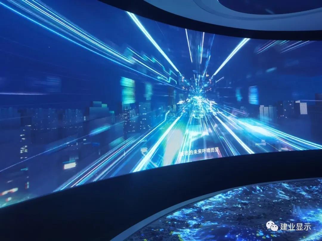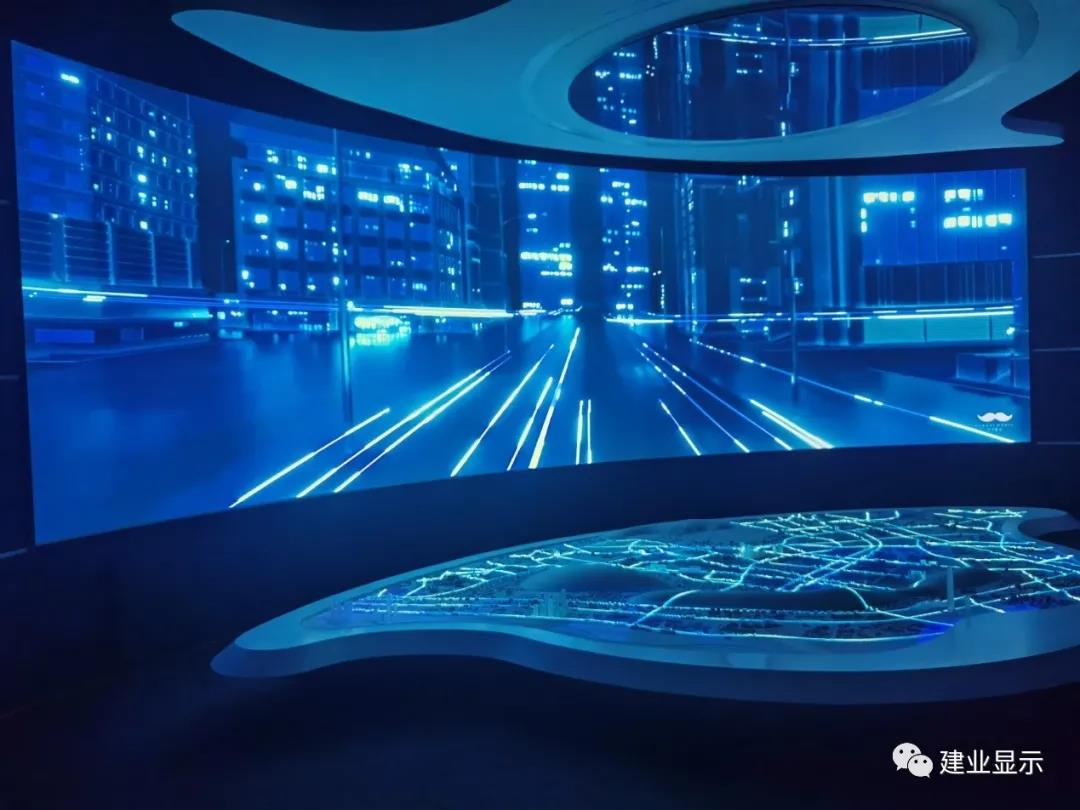 展廳中影音室弧幕使用2臺麗訊6500流明激光全高清投影機(jī),呈現(xiàn)一幅寬8米高2.6米的視頻畫面,分辨率高達(dá)3428*1114Pix,電子沙盤則使用1臺麗訊5500流明激光全高清投影機(jī),投影畫面寬5.2高3.25米,畫面精美,色彩表現(xiàn)豐富,簡述大浪片區(qū)不斷變革的發(fā)展歷程。