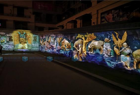 項(xiàng)目描述:以大足石刻歷史文化故事為原型,呈現(xiàn)一場(chǎng)歷史傳承與科技展示的震撼視聽(tīng)盛宴。大足石刻墻呈L型,高超6.5米,長(zhǎng)超60米,有三部分內(nèi)容構(gòu)成,左邊八組源于“知恩從效孝圖 ” ,中間為“正覺(jué)像” ,右邊是十組“牧牛圖” 。