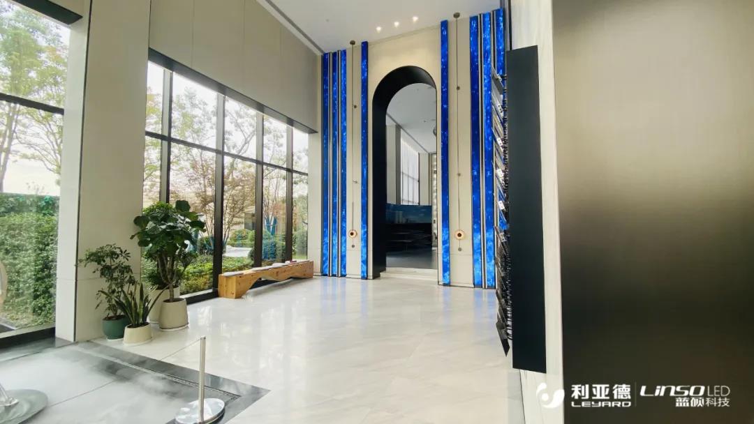 利亞德為上海金鼎天地地產(chǎn)展示區(qū)域打造以5G高速發(fā)展動(dòng)態(tài)為主題內(nèi)容的條形數(shù)字顯示入口,奠定新型智慧城市泛在感知系統(tǒng)展示區(qū)的數(shù)字化基調(diào)。