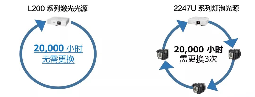 會(huì)議用機(jī),使用頻率高且單次使用時(shí)間較長,投影機(jī)的后續(xù)維護(hù)成本也是采購?fù)队皺C(jī)時(shí)的重要考量因素。此次愛普生升級后帶來了超長壽命激光光源,后續(xù)維護(hù)省心簡單。