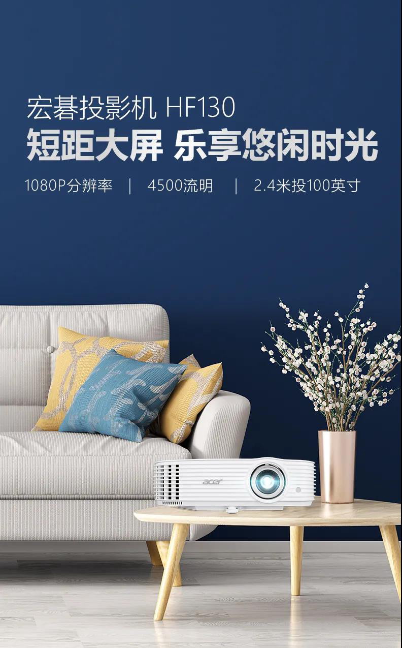 4500流明高亮度,1.3倍大變焦、家用黃金投射比,1080P全高清畫面,120Hz高刷新,從不失”幀“運動圖像順滑無卡頓拖影。年終宅家度假的各位小伙伴們,無論高清電影、歡笑綜藝,還是電競游戲,宏碁(Acer)家用投影機HF130,都能滿足您的居家悠閑大屏需求!現(xiàn)在宏碁投影京東自營旗艦店火熱預(yù)售中,更有贈品及各項活動等您來~