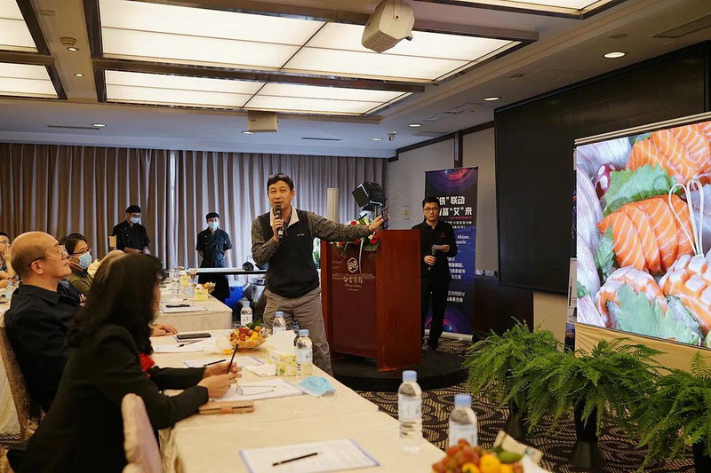 天創(chuàng)產(chǎn)品經(jīng)理譚永雄通過(guò)松下AW-UE155WMC高清攝像機(jī),將刺身的畫(huà)面投放到艾比森的高端LED會(huì)議屏上,細(xì)致展示食物的紋理、色澤等品質(zhì),仿佛鮮活的刺身就在眼前,勾起了在場(chǎng)賓客濃濃的食欲。
