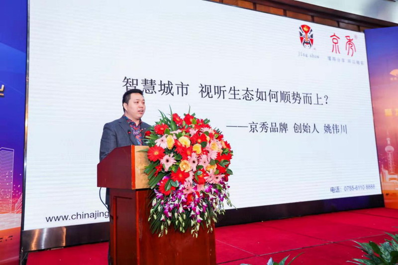 作為本屆論壇總冠名 京秀文化 的總經(jīng)理 姚偉川針對(duì)當(dāng)下大環(huán)境的影響,提出借力 智慧城市,讓視聽(tīng)生態(tài)順勢(shì)而上的觀點(diǎn)。