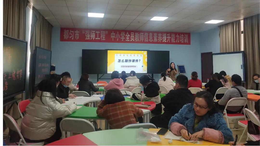 為深入貫徹落實教育部《關(guān)于實施全國中小學(xué)教師信息技術(shù)應(yīng)用能力提升工程2.0的意見》精神,聚焦智慧課堂發(fā)展趨勢,持續(xù)探索未來教學(xué)改革重心,自12月3日開始,都勻市教育局攜手希沃成功舉辦了為期六天的都勻市“強師工程”中小學(xué)全員教師信息素養(yǎng)提升能力培訓(xùn)活動,并取得良好成效。州教育信息化中心負責(zé)人況兆春、都勻市教育局副局長伍鵬飛出席開班儀式,其中市教育局相關(guān)科室負責(zé)人、全市小學(xué)教育集團學(xué)科骨干教師和管理干部里共有132人參加培訓(xùn)。