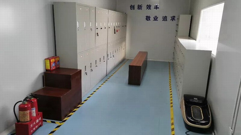 我們的車間入口設(shè)有專門的更衣室,更換鞋物后,才得以進(jìn)入。