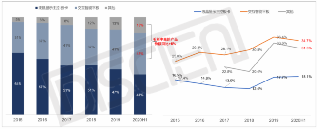 視源-2017-2020年度營收-分產品結構及毛利率