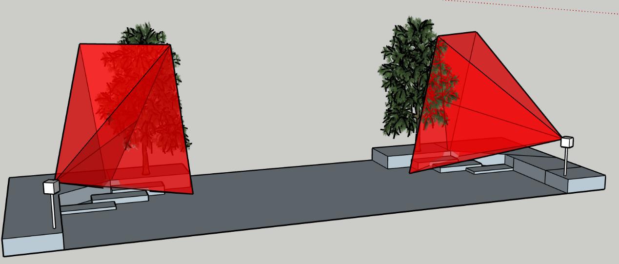 毗河灣游人如織,光影“魔樹”的呈現(xiàn)既要保證效果,又不能妨礙到游客的參觀。因此,方案設(shè)計(jì)前期就考慮到了空中作業(yè)方案,在半空中搭建了投影平臺(tái)。兩臺(tái)PX2000UL+分別置于箱體中,而箱體則固定于10余米高的支撐柱上。這樣的設(shè)計(jì)方式讓英雄的可投影畫幅得到最大程度釋放,投影機(jī)自帶50%水平位移也解決了固定高度安裝方式所帶來(lái)的調(diào)試難題。并且光路的高度足以避開游客的遮擋,即便游客走到大樹跟前,近距離欣賞、觸碰這難得一見的光影奇景,也不會(huì)阻礙到光路,讓大樹依舊光彩奪目、“無(wú)影”無(wú)蹤。