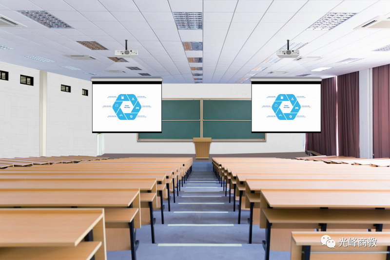 亮度。采用光峰最新激光商教投影機,搭配觸控書寫幕布/電動幕布,組合音響、吊麥、中控、物聯(lián)等教育教學(xué)資源,讓大學(xué)課堂更加精彩。