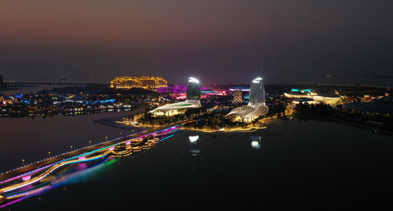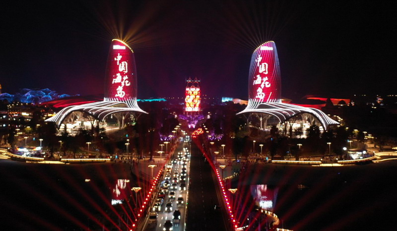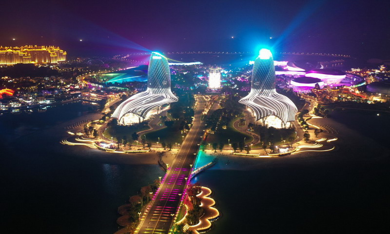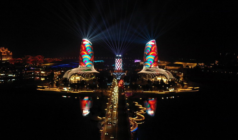 超酷炫!海花島雙塔創(chuàng)意燈光秀成“打卡”熱點