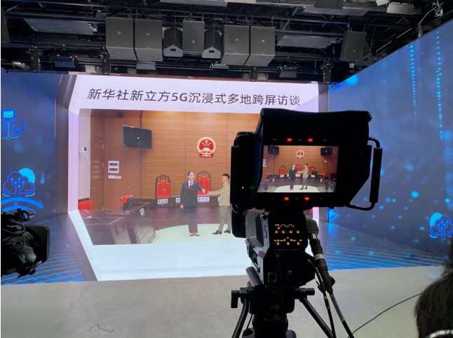 在演播室里,遠方不再是平面上單調(diào)的“二次元”,而成了肉眼可見的立體場景。通過提前采集代表委員及所在工作環(huán)境的實時信號,再通過CAVE演播室技術(shù),將場景等比例還原。此外,再配以5G、AI、MR技術(shù)加持,主持人就能“跨入”代表委員實地工作和調(diào)研場景與代表委員交談。