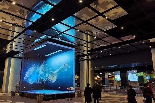 利亞德·藍(lán)碩文化科技打造的TODTIME時(shí)間廊-LED大型柱體互動(dòng)視效系統(tǒng),位于上海最美公交樞紐莘莊南廣場(chǎng)的公交廣場(chǎng)。近日展出了一樁特殊的藝術(shù)作品——《藍(lán)色的春天》。優(yōu)美奇異的河流空間仿佛能破屏而出,巨大的藍(lán)色立方體四面都有裸眼3D的效果,不僅美麗異常,還有著深刻寓意:以耳熟能詳?shù)拿端{(lán)色多瑙河》為作品基底,為孤獨(dú)癥群體打造一片愛(ài)的藍(lán)海。