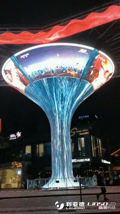 藍(lán)碩項(xiàng)目蘭桂坊酒杯狀創(chuàng)意LED屏,位于裸眼3D公共媒體藝術(shù)對(duì)岸。顯示屏結(jié)合當(dāng)?shù)氐娜宋奶卣,整合?shí)際的設(shè)計(jì)理念,與當(dāng)?shù)卣w設(shè)計(jì)風(fēng)格相得益彰,極具設(shè)計(jì)感和藝術(shù)性,呈現(xiàn)出虛幻莫測(cè)的視覺(jué)效果,繪聲繪色,使人印象深刻。