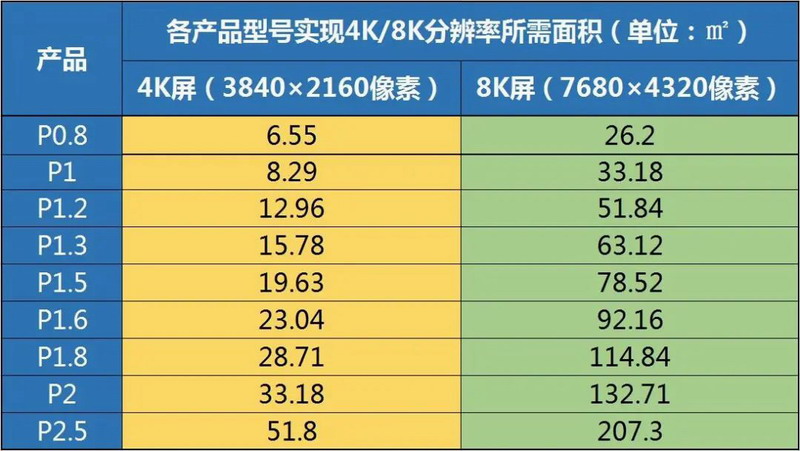 面積足夠大即可實現(xiàn)2K/4K/8K…超高清顯示