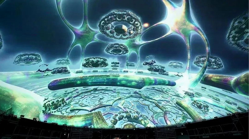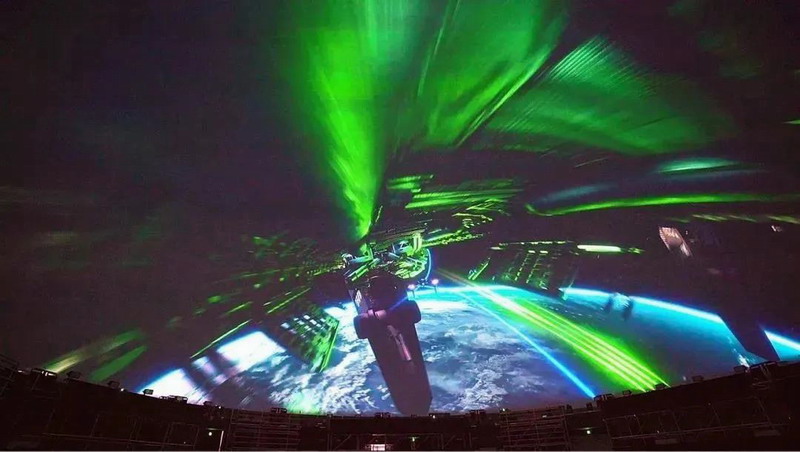 光影視界是典型的球幕系統,其半球形銀幕宛如可以容納浩瀚蒼穹一般,將觀眾的視角全部“禁錮”在銀幕畫面之中,使得觀眾目光所到之處幾乎全部是栩栩如生、絢麗多彩的逼真畫面。