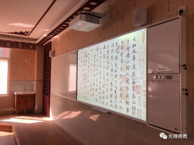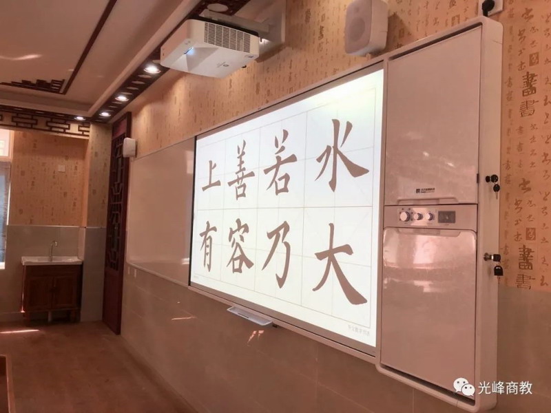 和小編一起來(lái)看西安市雁塔區(qū)某中學(xué),光峰激光高清超短焦商教投影機(jī)搭配電子白板,完美配合書(shū)法教室,大氣舒適護(hù)眼。即使白底黑字也不刺眼,即使沒(méi)有窗簾也依然清晰可見(jiàn),即使坐在第一排側(cè)邊也沒(méi)有視覺(jué)死角。以人為本,保護(hù)視力。