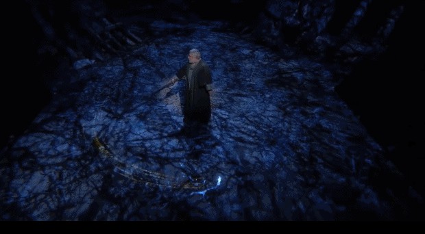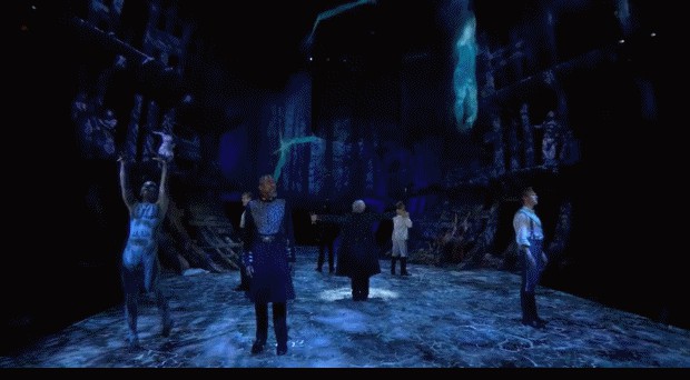 老戲骨西蒙·拉塞爾·比爾與精靈 Ariel同臺飚戲。普洛斯帕羅運用書、法衣、魔杖,指揮精靈,讓觀眾感嘆數(shù)字化演員和真實演員一樣精彩。