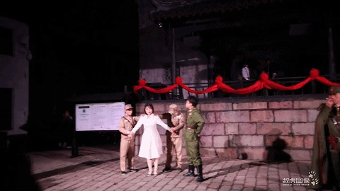 演藝由《崗哨門關(guān)》《紅影潛伏》《情生》《茶館智斗》《游行》《迎親》《智斗胡司令》七部分組成,通過(guò)橫涇老街行進(jìn)式夜游,層層鋪墊、遞進(jìn),把觀眾引導(dǎo)到橫涇劇場(chǎng)看一出好戲。正所謂“一千個(gè)讀者有一千個(gè)哈姆雷特”,每一個(gè)到這里的游客,自有一出屬于你的《暗戰(zhàn)·沙家浜》。