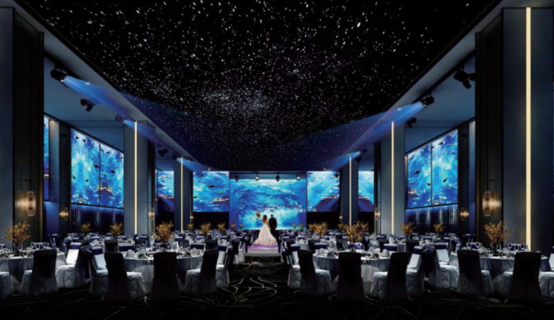 在某酒店的全息宴會廳,長虹工程激光投影讓宴會廳的墻壁可以根據(jù)宴會主題切換裝飾場景,流光溢彩,光影燦然。這樣,不僅可以更靈活地滿足顧客對宴會氛圍的需求,還能為顧客節(jié)省布置成本,讓酒店吸引更多的顧客預定使用。