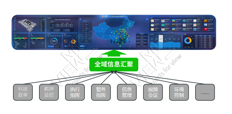 支持各類安防報警監(jiān)控接入、庭審核系統(tǒng)、遠程執(zhí)法指揮系統(tǒng)、遠程視頻會議系統(tǒng)接入、各類業(yè)務(wù)數(shù)據(jù)接入、GIS地理地圖接入、大數(shù)據(jù)可視化綜合應(yīng)用接入、移動單兵接入等。