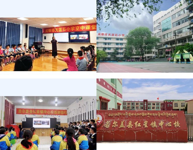 阿壩藏族羌族自治州若爾蓋縣紅星鎮(zhèn)中心學校的孩子們與成都天涯石小學的孩子共享一樣的音樂課堂;