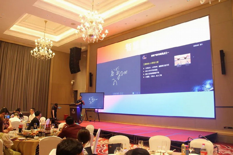 最后,專家們來到五星級酒店—廈門翔安悅?cè)A酒店,參加交流晚宴。會上,強力巨彩營銷事業(yè)群總經(jīng)理王兆江先生做歡迎致辭,并在未來核心產(chǎn)業(yè)發(fā)展、LED大顯示無限潛力以及強力巨彩助力未來智慧教育等方面分享了精彩的主題演講!