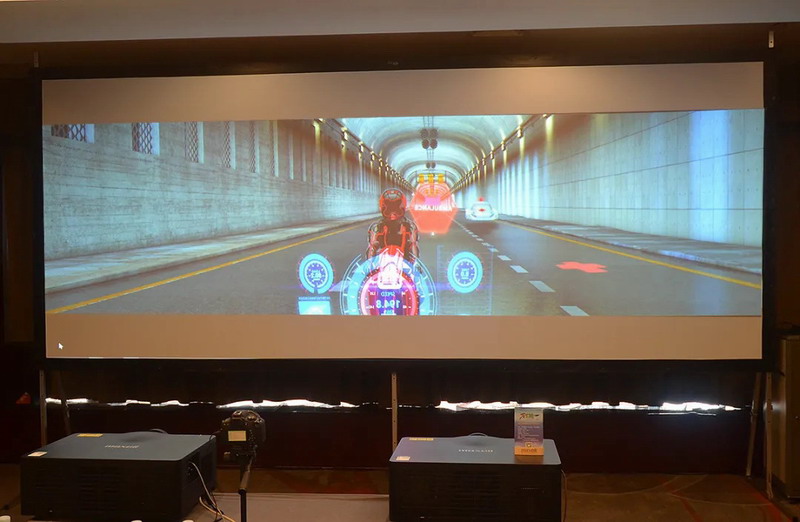 在專(zhuān)業(yè)方案中,多臺(tái)投影機(jī)拼接融合方案應(yīng)用廣泛,MMP-D1000UB具有高效易用的多屏幕模式,融合或雙畫(huà)面的情況下,提高投射畫(huà)面的整體亮度、色彩一致性,配合強(qiáng)化的融合拼接功能,大幅縮短安裝時(shí)間。現(xiàn)場(chǎng)主屏幕就是由兩臺(tái)MMP-D1000UB配合相機(jī)打造,效果出色。