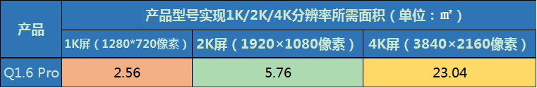Q1.6 Pro顯示產(chǎn)品實(shí)用價(jià)值高。一方面,強(qiáng)力巨彩經(jīng)過多年多頻率的普及價(jià)推廣,價(jià)格越來越親民,現(xiàn)今的價(jià)格僅為2年前的1/3左右。此外,不到3㎡即可實(shí)現(xiàn)1K 720P標(biāo)清顯示,不到6㎡即可實(shí)現(xiàn)2K全高清顯示,23㎡即可實(shí)現(xiàn)4K超高清顯示,較于拼接屏無疑是高性價(jià)比替代產(chǎn)品!