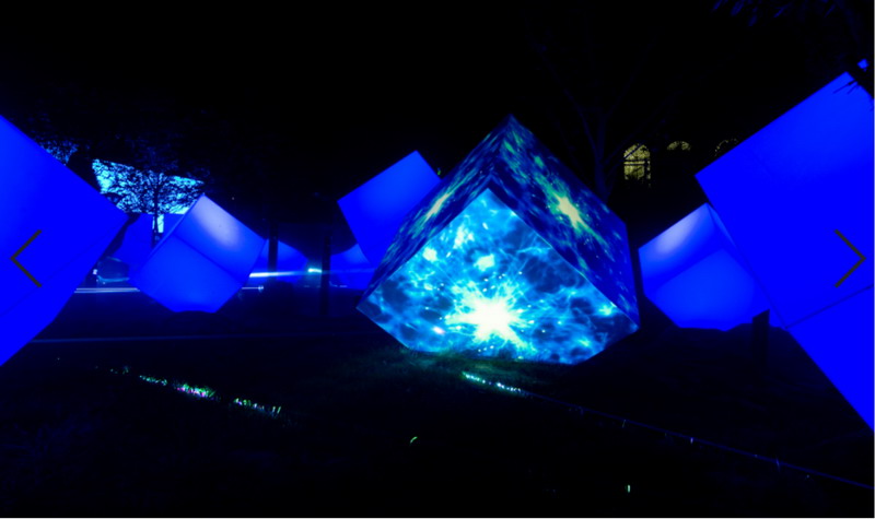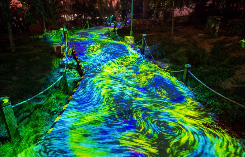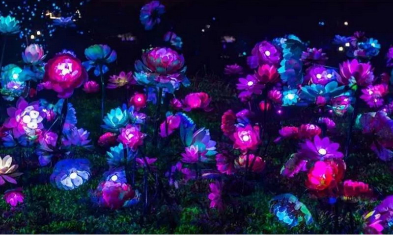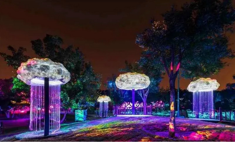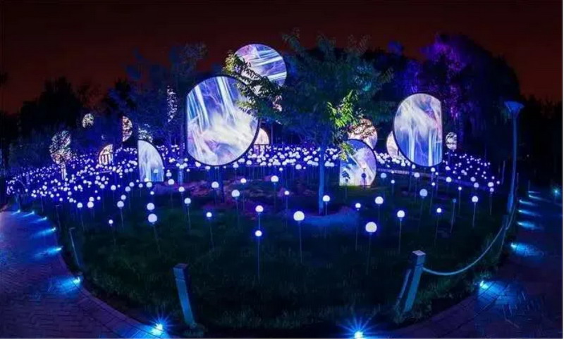 首屆北京國際光影藝術季占地18000平米,以“萬物共生”為主題,在北京玉淵潭公園“櫻落花谷”利用燈光藝術上演夢幻國度。