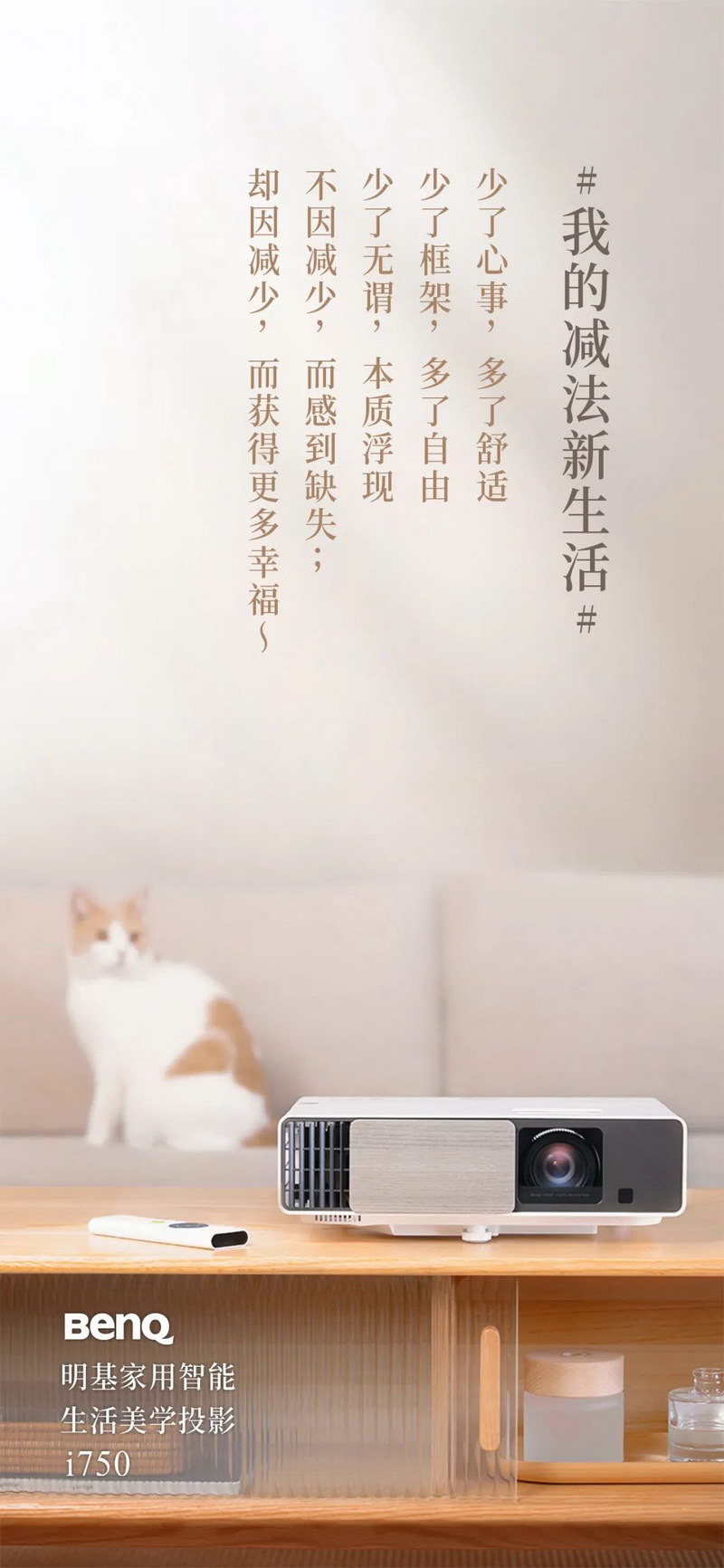 明基i750智能家用生活美學(xué)投影儀,用獨(dú)到的減法設(shè)計(jì)為質(zhì)感生活做加法,包含更純粹的線條、更自然的界面、更簡(jiǎn)易的操作、更強(qiáng)大的功能于一身。一臺(tái),就夠了。